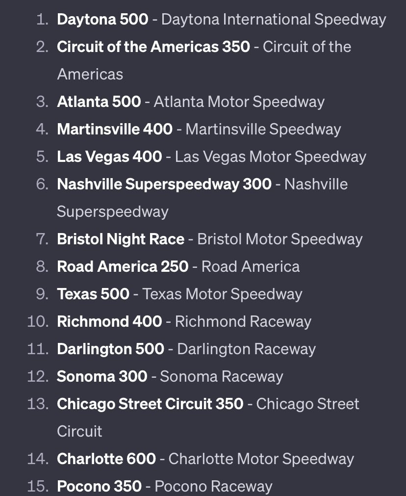 Darian Gilliam On X 2025 NASCAR Cup Series Schedule According To ChatGPT Https t co 2uLICBvSHW X