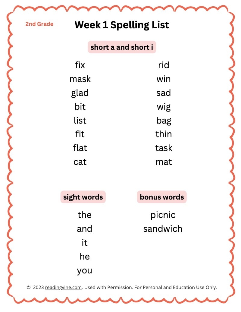 2nd Grade Spelling Words Full 31 Week Curriculum