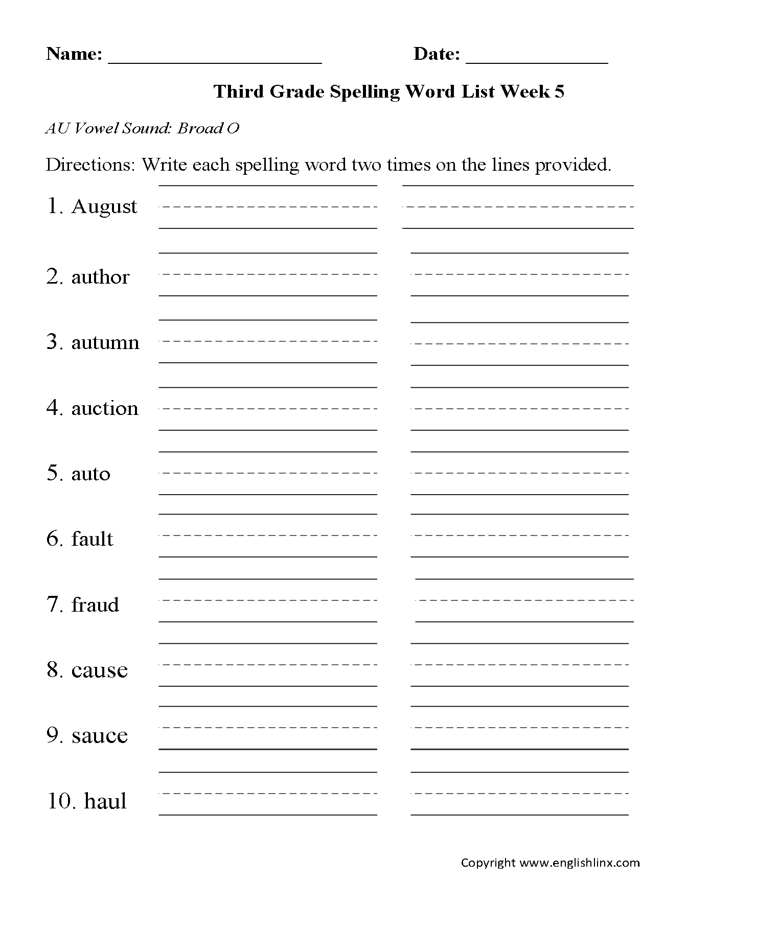 8 Printable Third Grade Spelling Writing Spelling Test Etsy