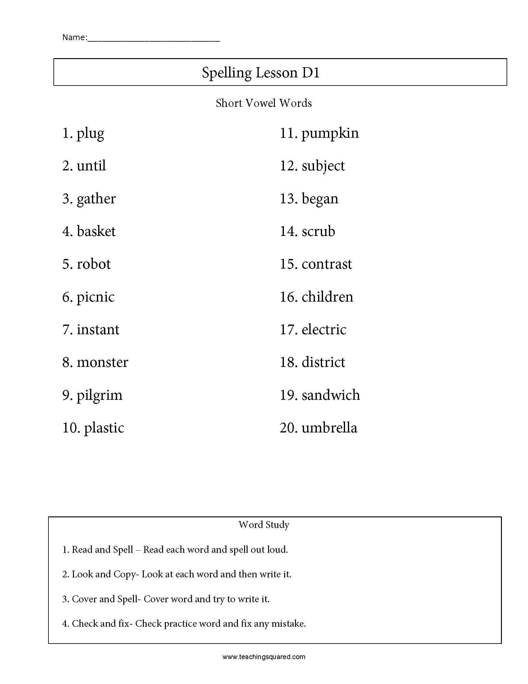Spelling Worksheets Fourth Grade Spelling Worksheets