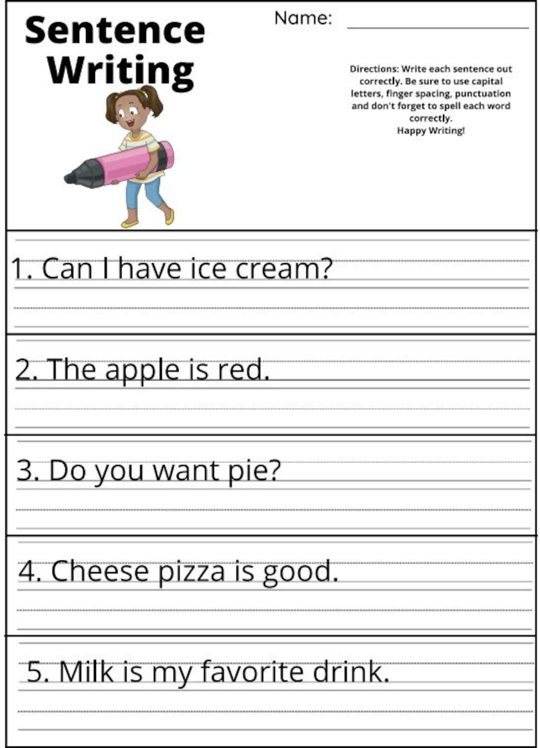 10 Printable Write The Sentence Worksheets For Kindergarden 4th Grade Ages literacy reading Help Etsy
