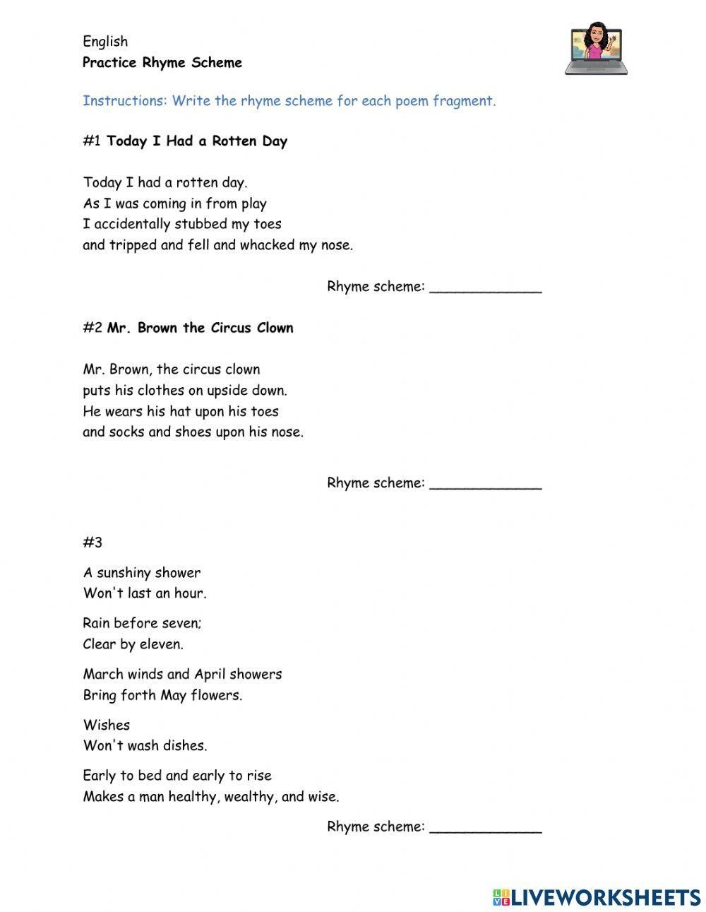 Rhyming Scheme Activity Live Worksheets Worksheets Library