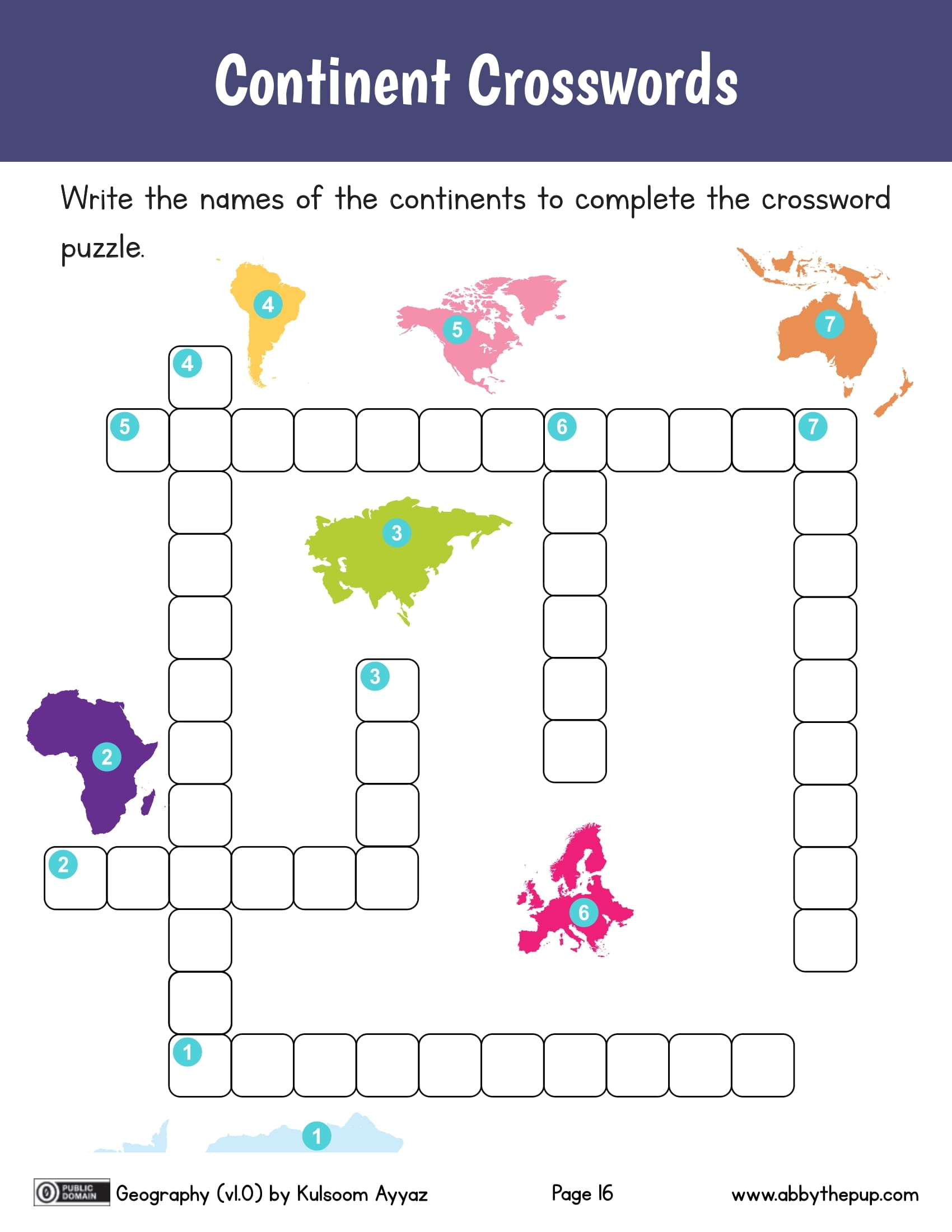 Continents Crossword Free Printable Puzzle Games