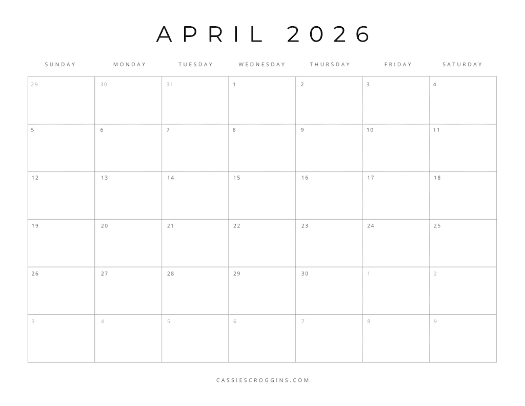 FREE PRINTABLE 2026 APRIL CALENDAR Cassie Smallwood