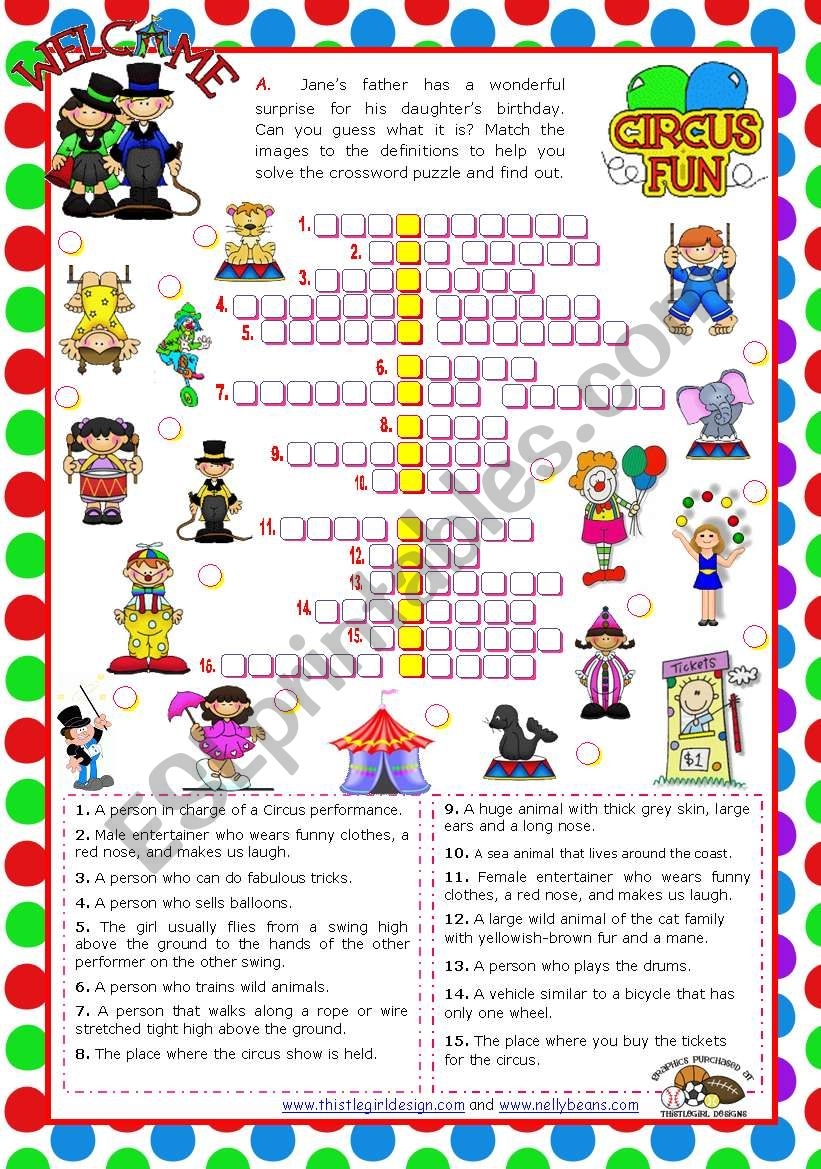 At The Circus Set 3 Crossword Puzzle ESL Worksheet By Mena22
