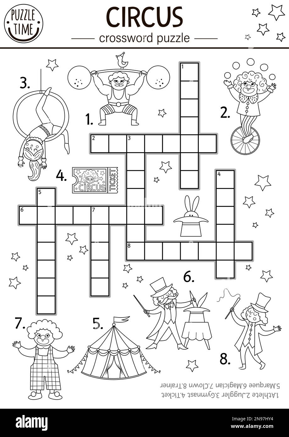 Vector Circus Crossword Puzzle For Kids Simple Black And White Amusement Show Quiz With Funny Performers For Children Educational Line Activity With Stock Vector Image Art Alamy