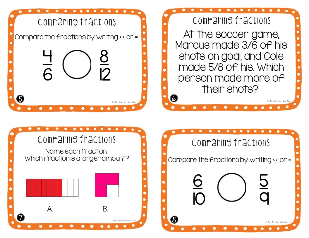 3rd Grade Comparing Fractions Task Cards Comparing Fractions Center The Teacher Next Door