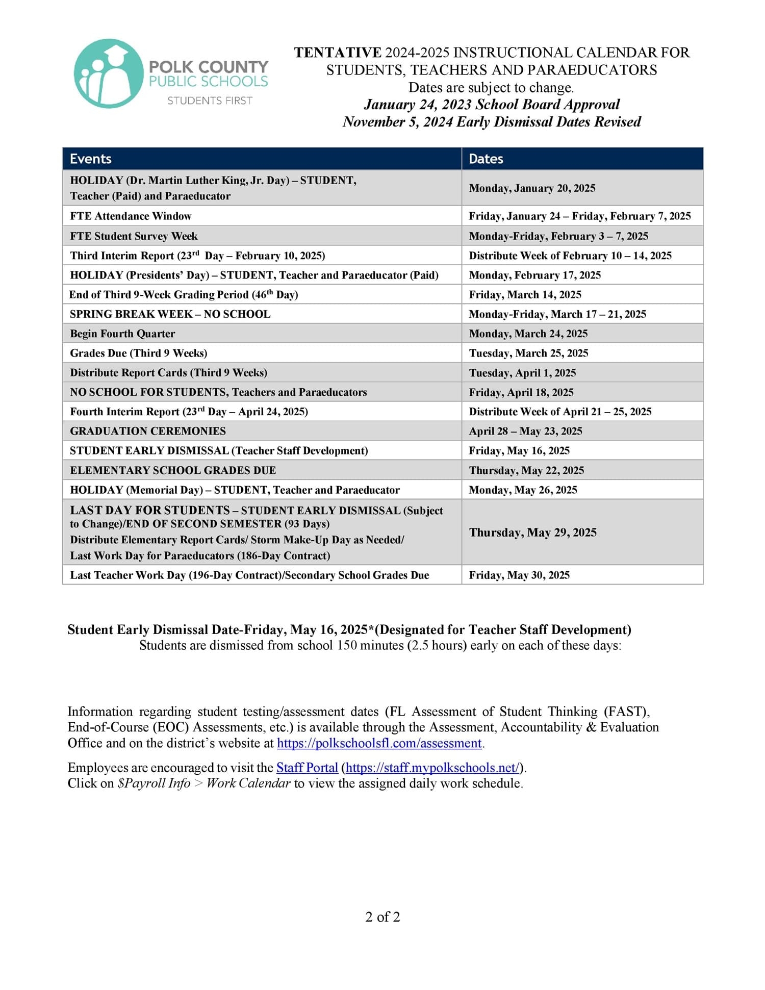 2024 2025 Polk County Schools Calendar Public Charter Private