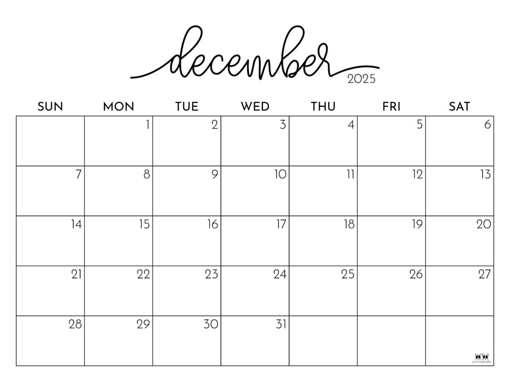 December 2025 Calendar Printable