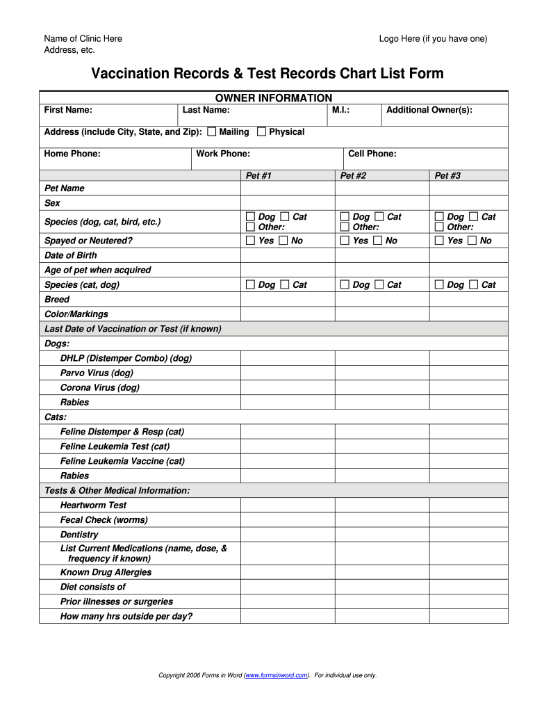 Dog Vaccination Record Printable PDF Form Fill Download PDF For Free