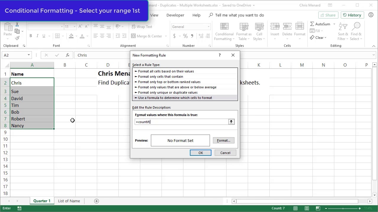 Excel Conditional Formatting Find Duplicates On Two Worksheets By Chris Menard YouTube