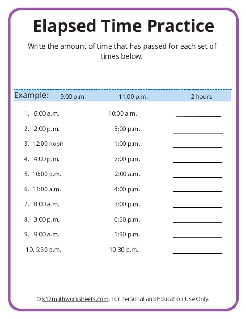 Furthermore, working on elapsed time worksheets allows students to apply their math skills in a real-world context. They can see how telling time is relevant to their daily routines and understand the importance of time management. These worksheets can also be a great way to reinforce other math concepts such as addition and subtraction.