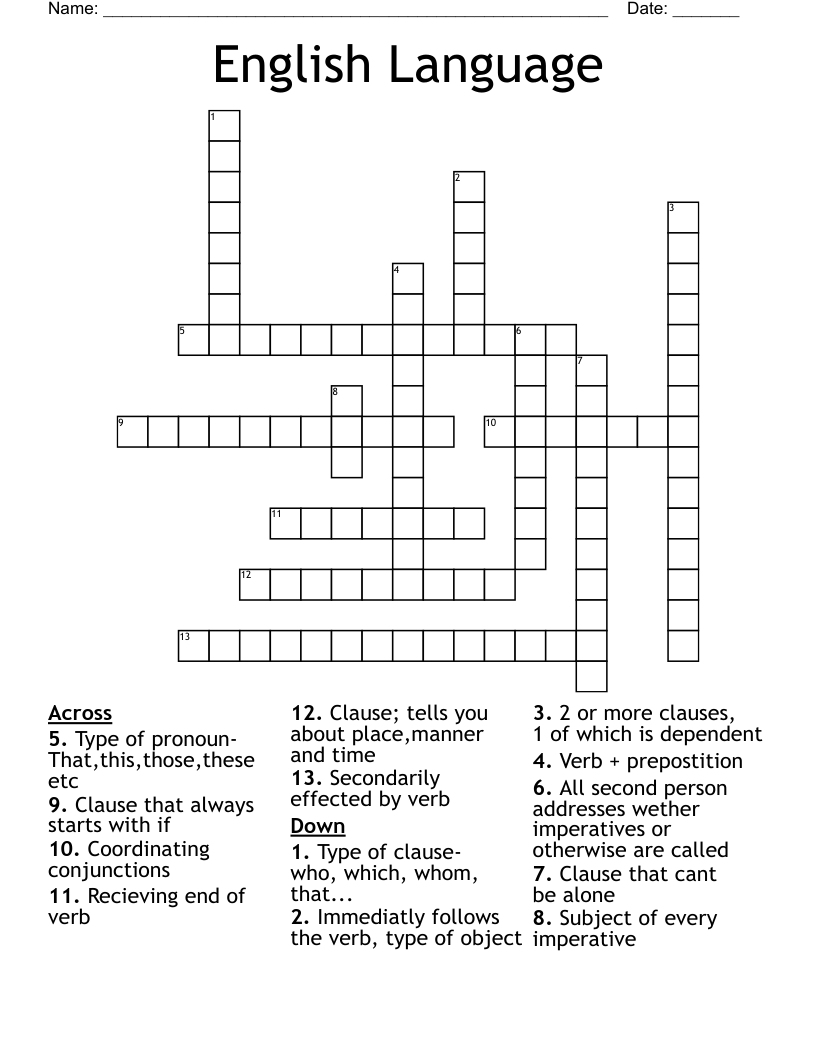 English Language Crossword WordMint