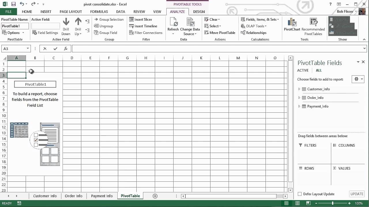Create An Excel PivotTable Based On Multiple Worksheets YouTube