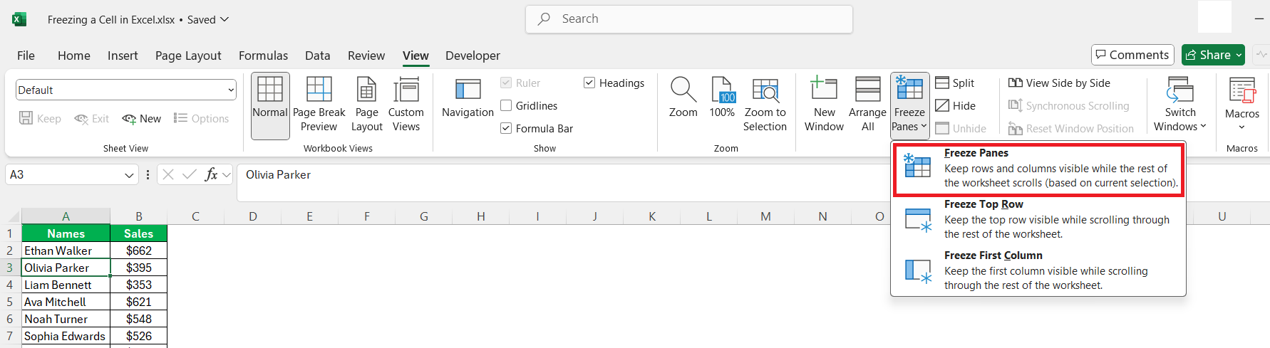 How To Freeze Panes In A Microsoft Excel Spreadsheet Smart Office