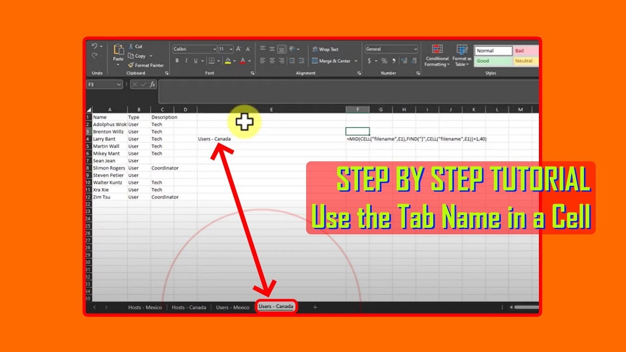 Return Sheet Name Into A Cell Excel Formula YouTube
