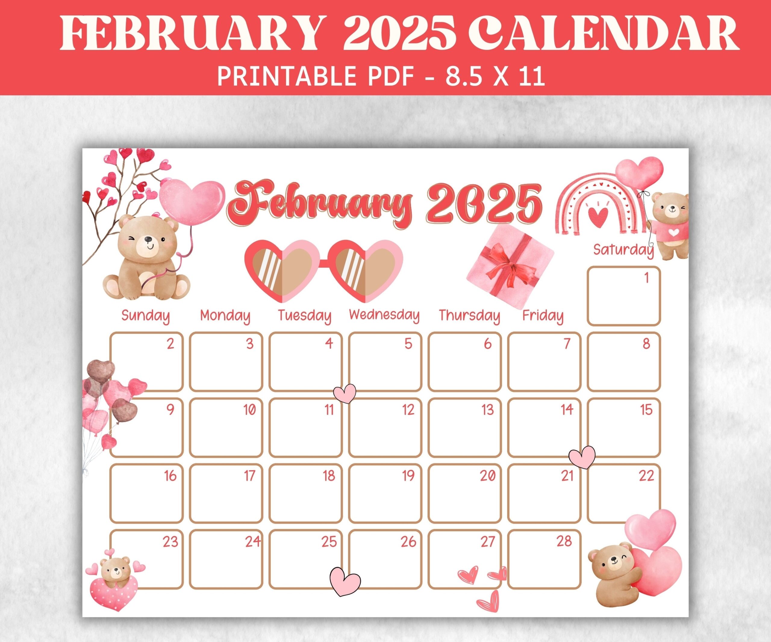 Kids February 2025 Calendar Printable 2025 Calendar Homeschool Preschool Calendar Board Children Monthly Planner Valentines Day Calendar Etsy