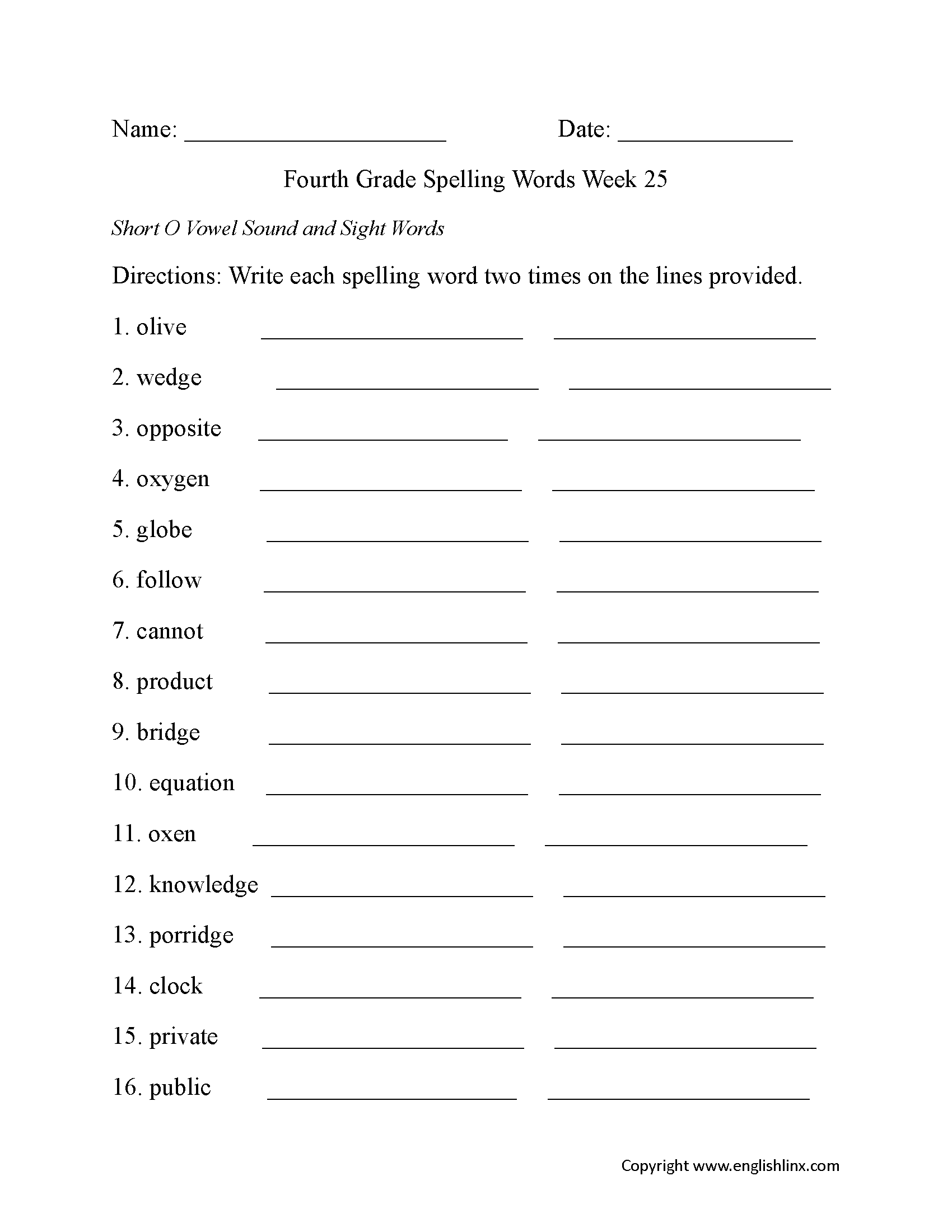 Spelling Worksheets Fourth Grade Spelling Worksheets