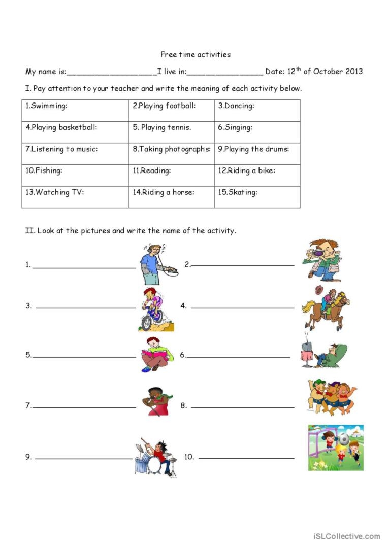 Free Time Activities Easy Word Scramble Worksheet Activity For Children And ESL Students Free PDF Download Group 1 Ezpzlearn