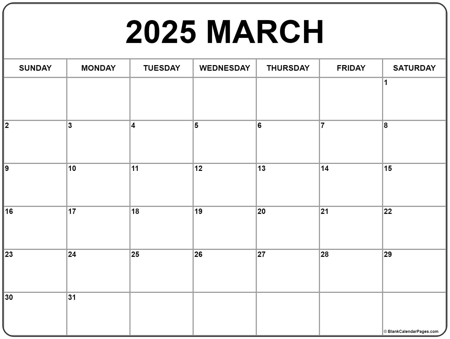 Free Printable Blank March 2025 Calendar