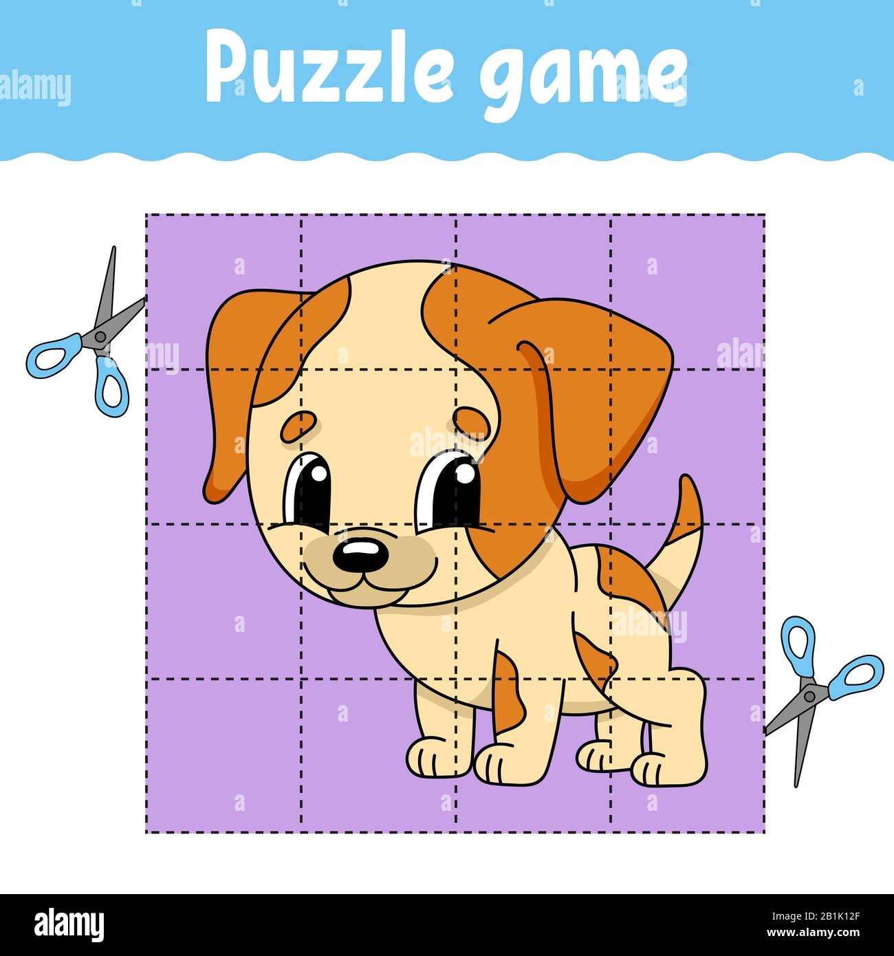 Cartoon Educational Jigsaw Puzzle Game For Children With Funny Dog Character 4651453 Vector Art At Vecteezy