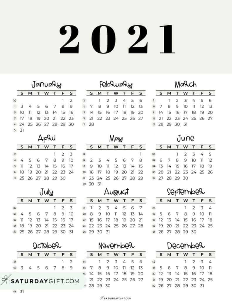 2021 Calendar Printable Cute Free 2021 Yearly Calendar Templates