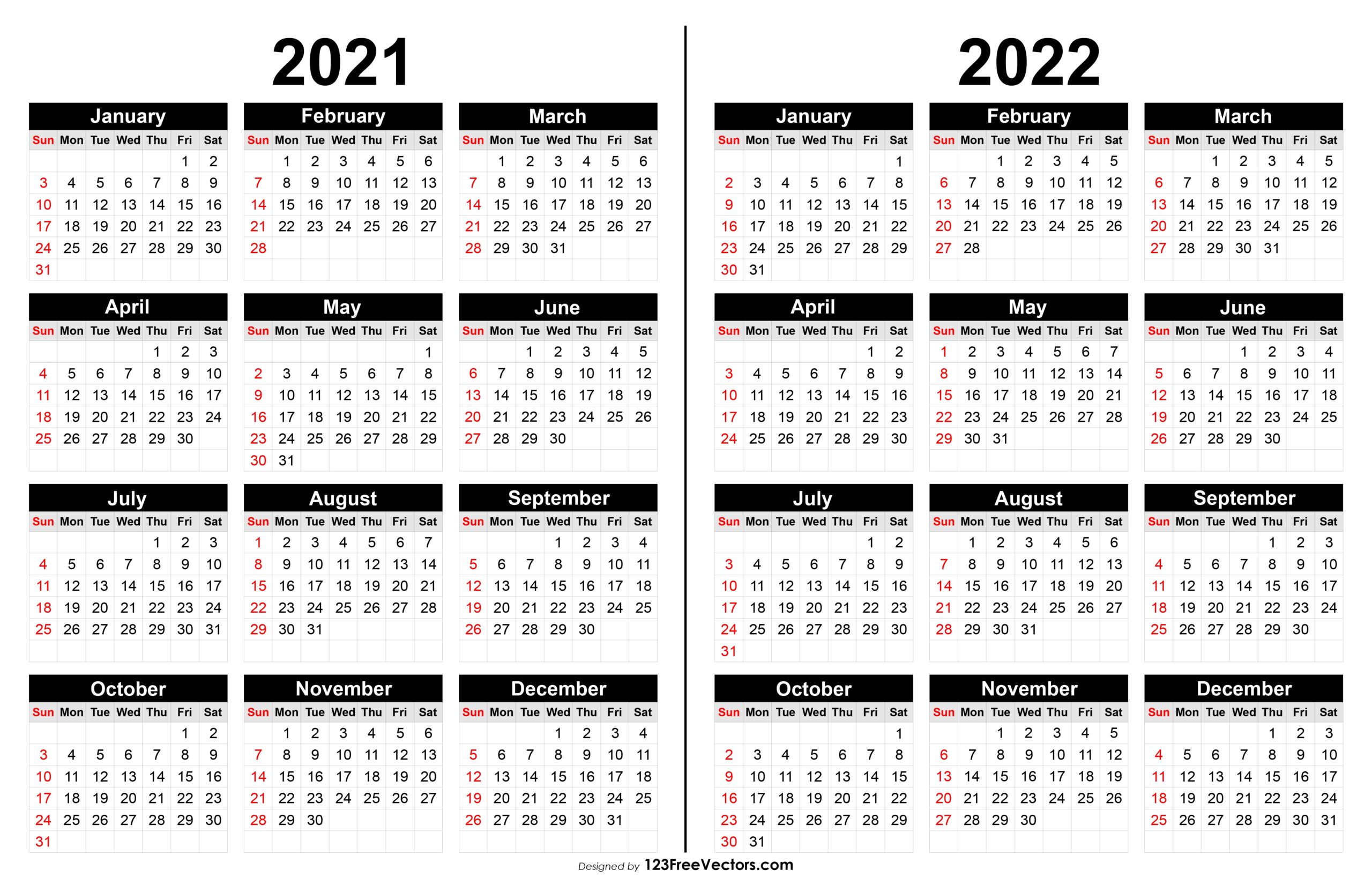 Free Download Printable Calendar Template For 2021 And 2022