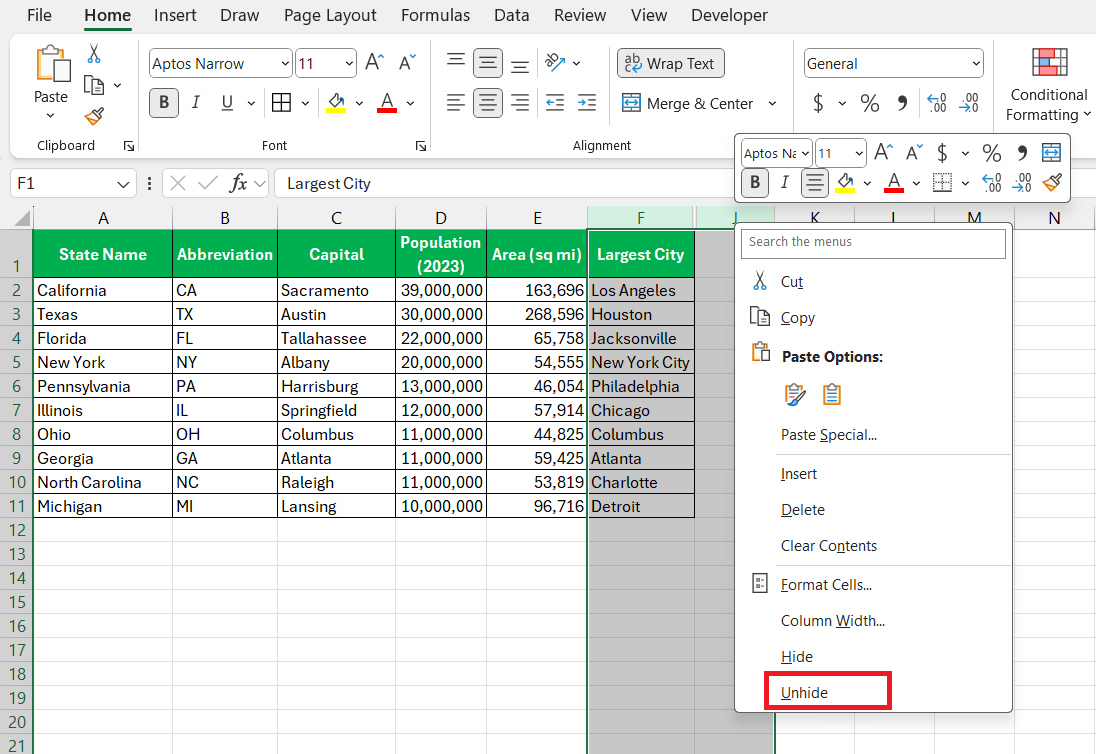 How To Unhide Column In Excel Step By Step Guide MyExcelOnline