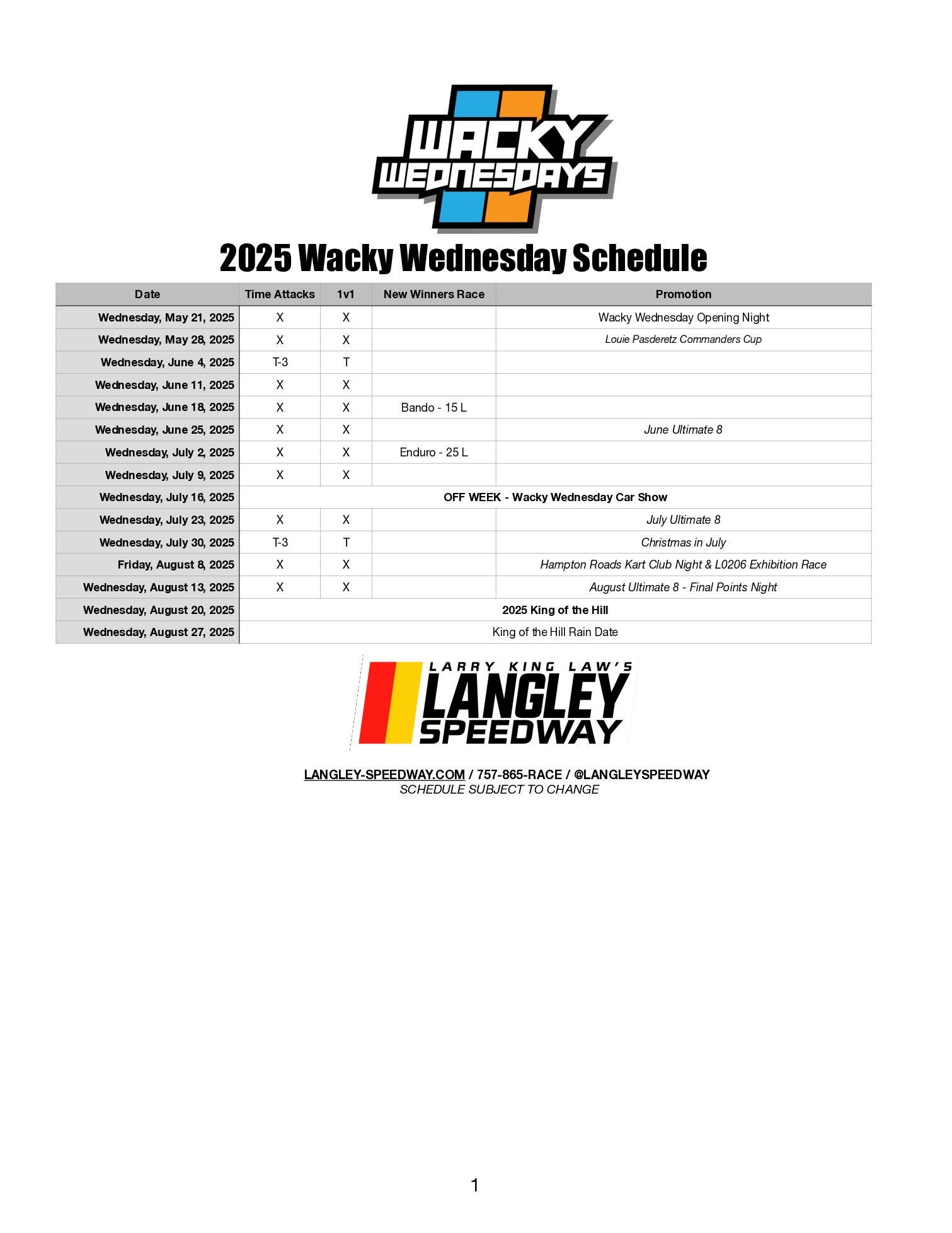 Exciting Racing Season Returns With The 2025 Wacky Wednesday Schedule Larry King Law s Langley Speedway