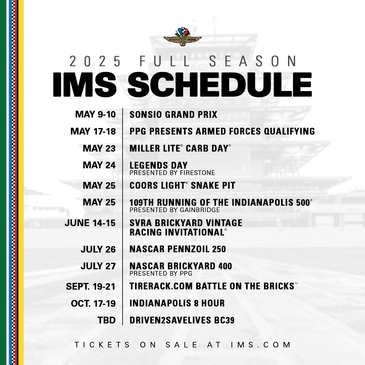 Indianapolis Motor Speedway On X 2025 Calendar Drop Here Is Your Full Season Schedule For Next Year At The Racing Capital Of The World Can t Wait To See You At Your