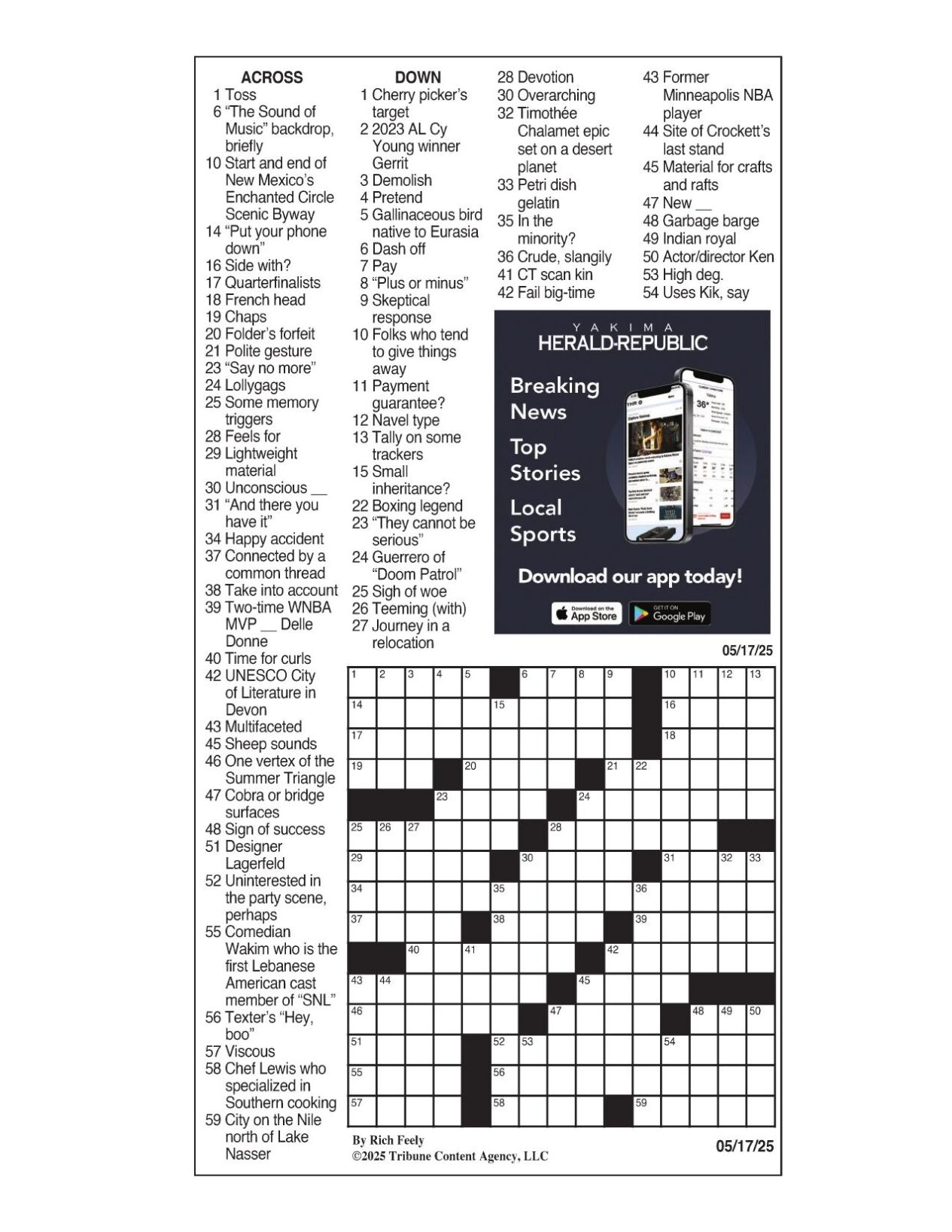 0504 25 NY Times Crossword 4 May 25 Sunday NYXCrossword