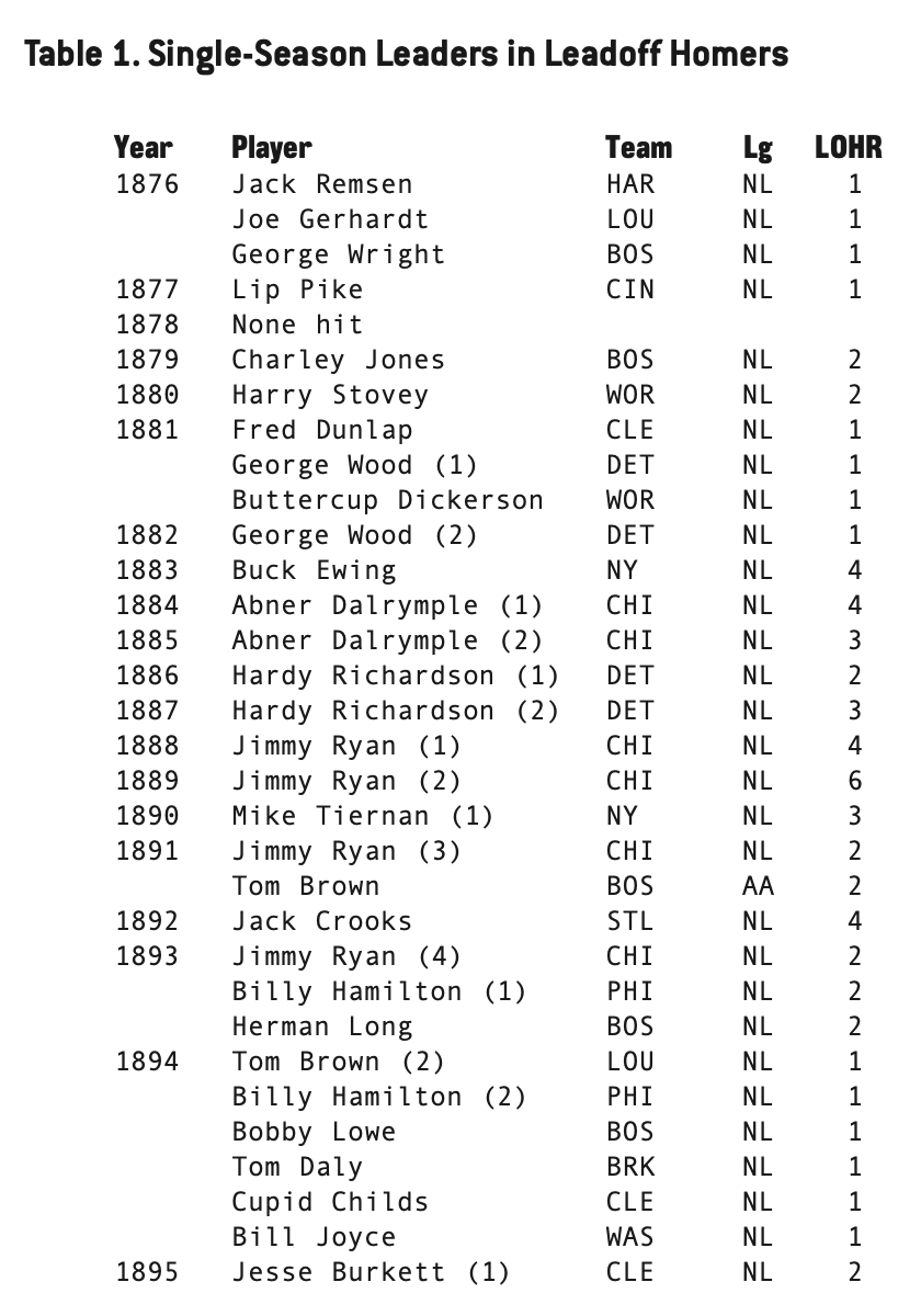 A Chronology Of The Best Leadoff Home Run Hitters Society For American Baseball Research