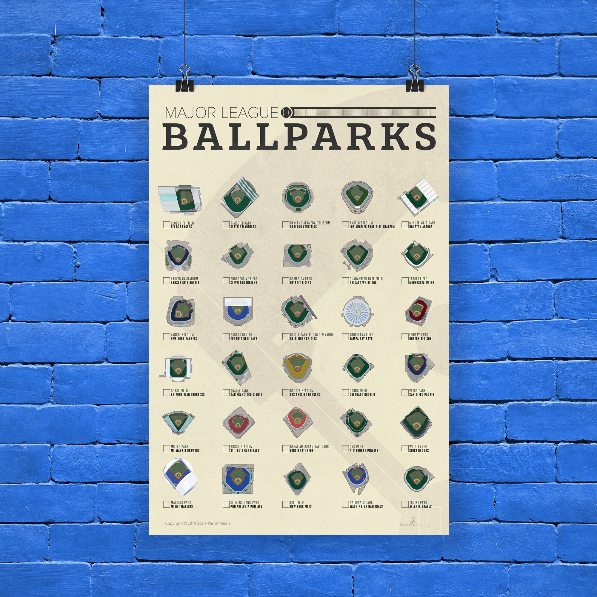 MLB Ballpark Checklist Poster Major League Baseball Stadiums Etsy