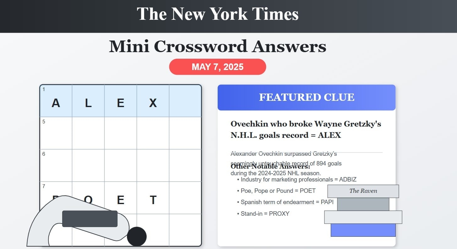 Ovechkin s Record Day NYT Mini Crossword Answers May 7 2025 H2S Media