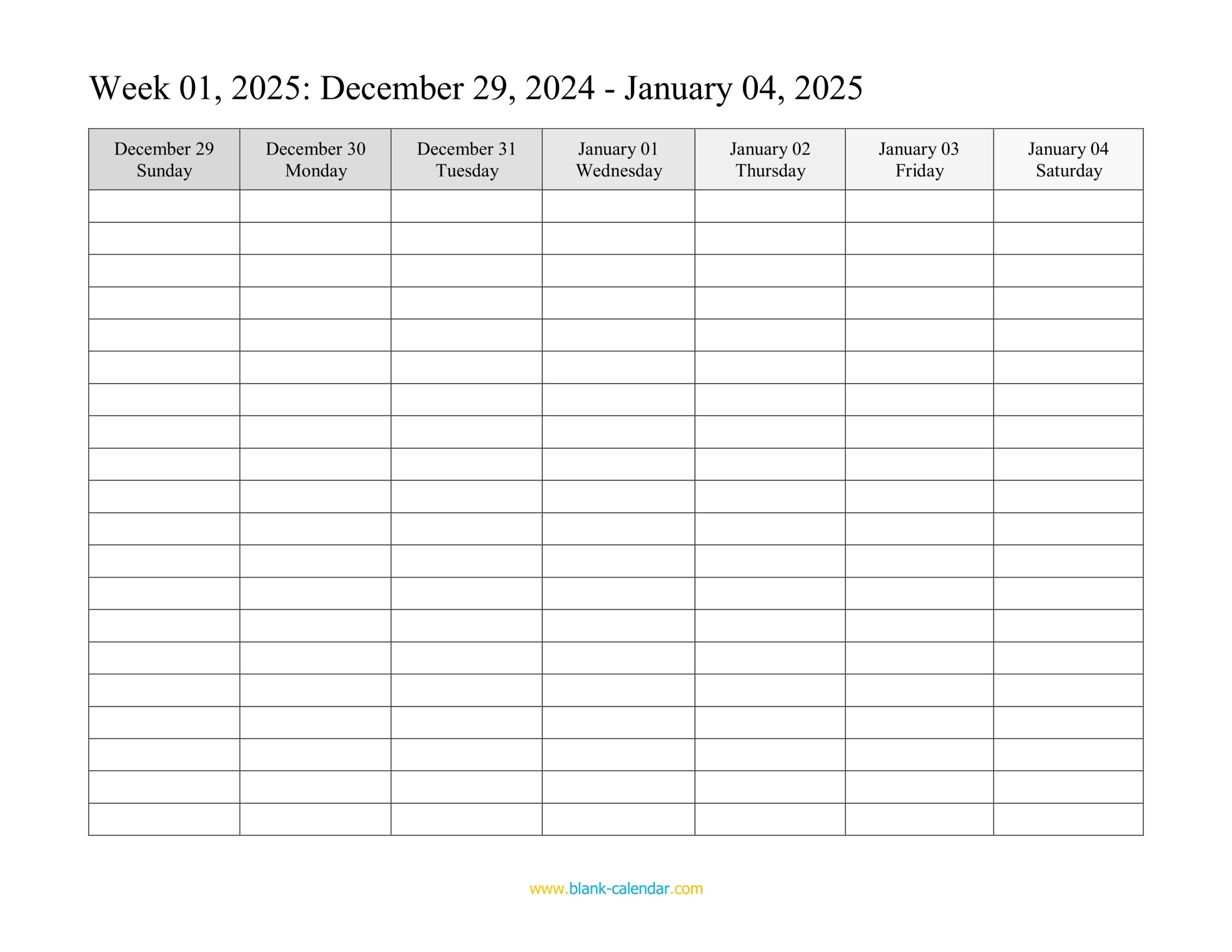 printable blank weekly calendar 2025