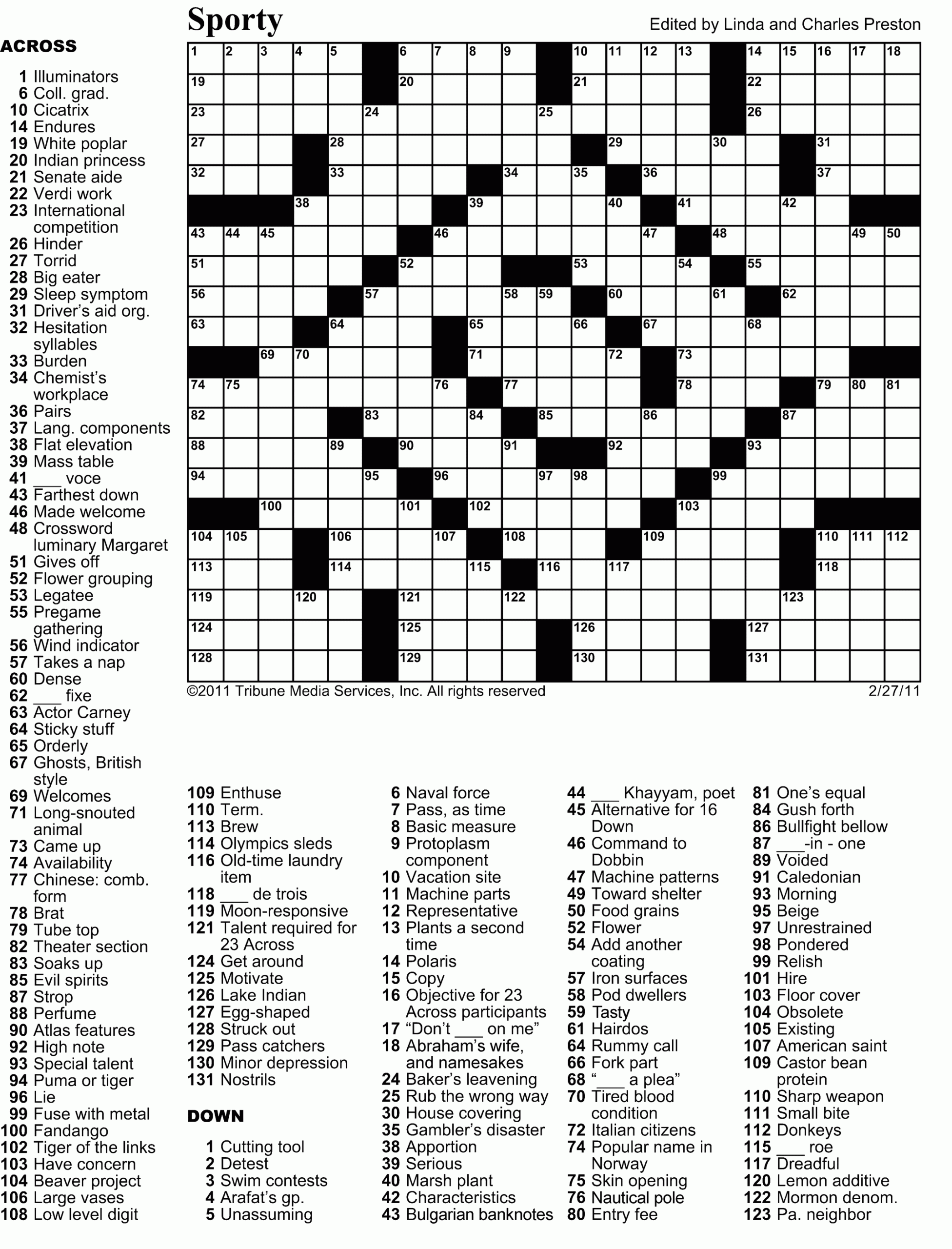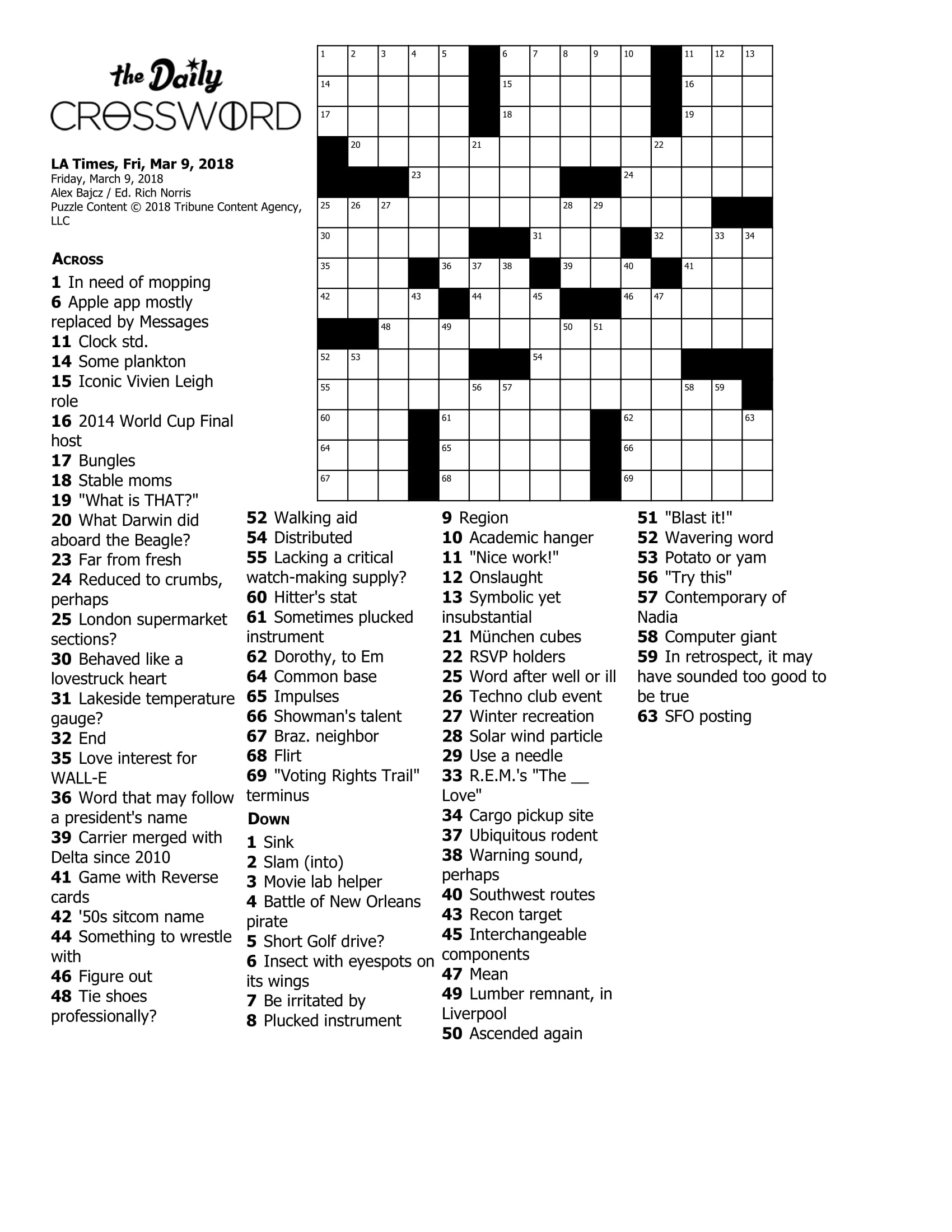 Printable Crossword Puzzles March 2018