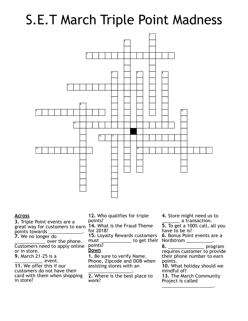 S E T March Triple Point Madness Crossword WordMint