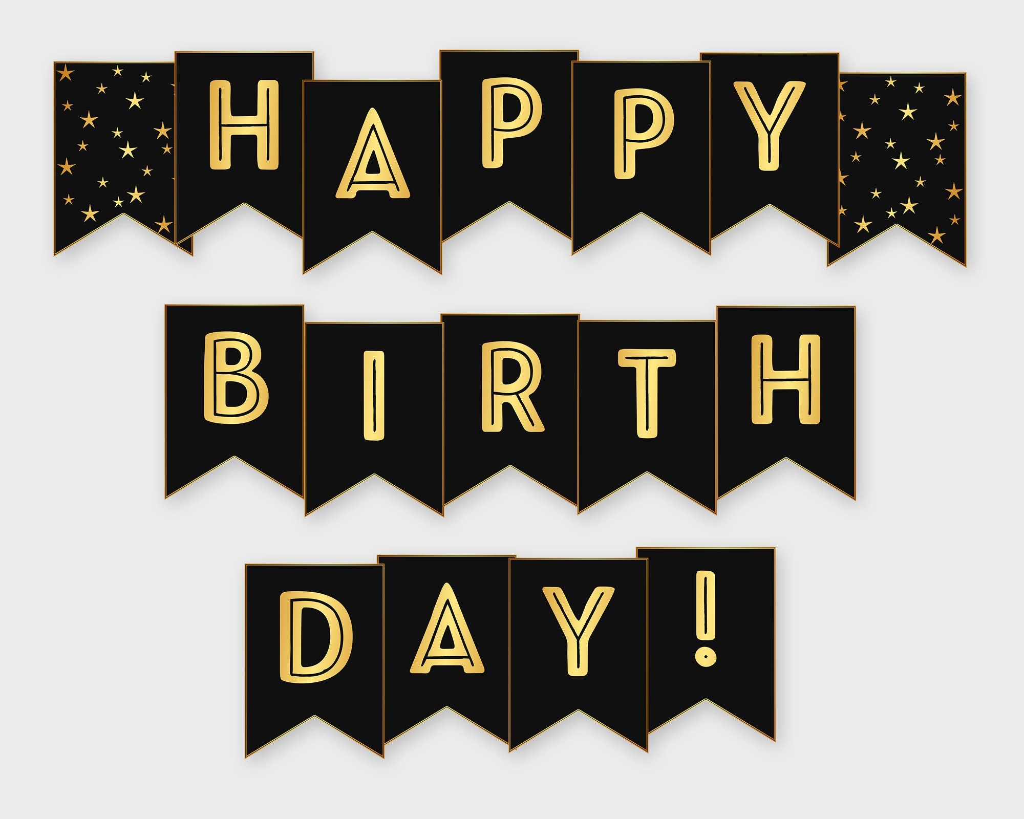 Happy Birthday Printable Banner Black Gold Birthday Party Printable PDF DIY Print Instant Download GWR Etsy