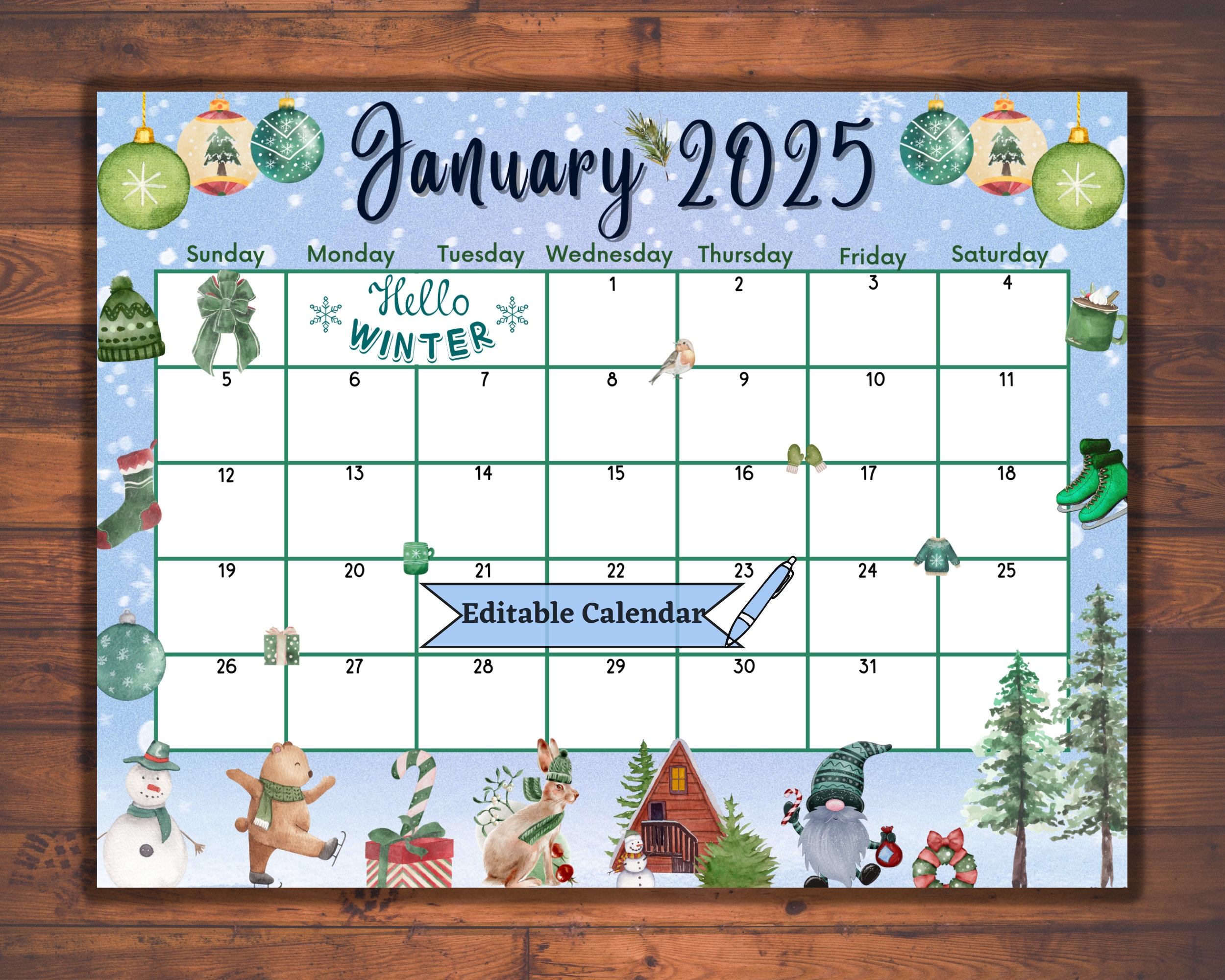 Editable Fillable January 2025 Calendar For Happy New Year Colorful Printable Month Planner Cute Animals Winter Classroom Agenda For Kids Etsy