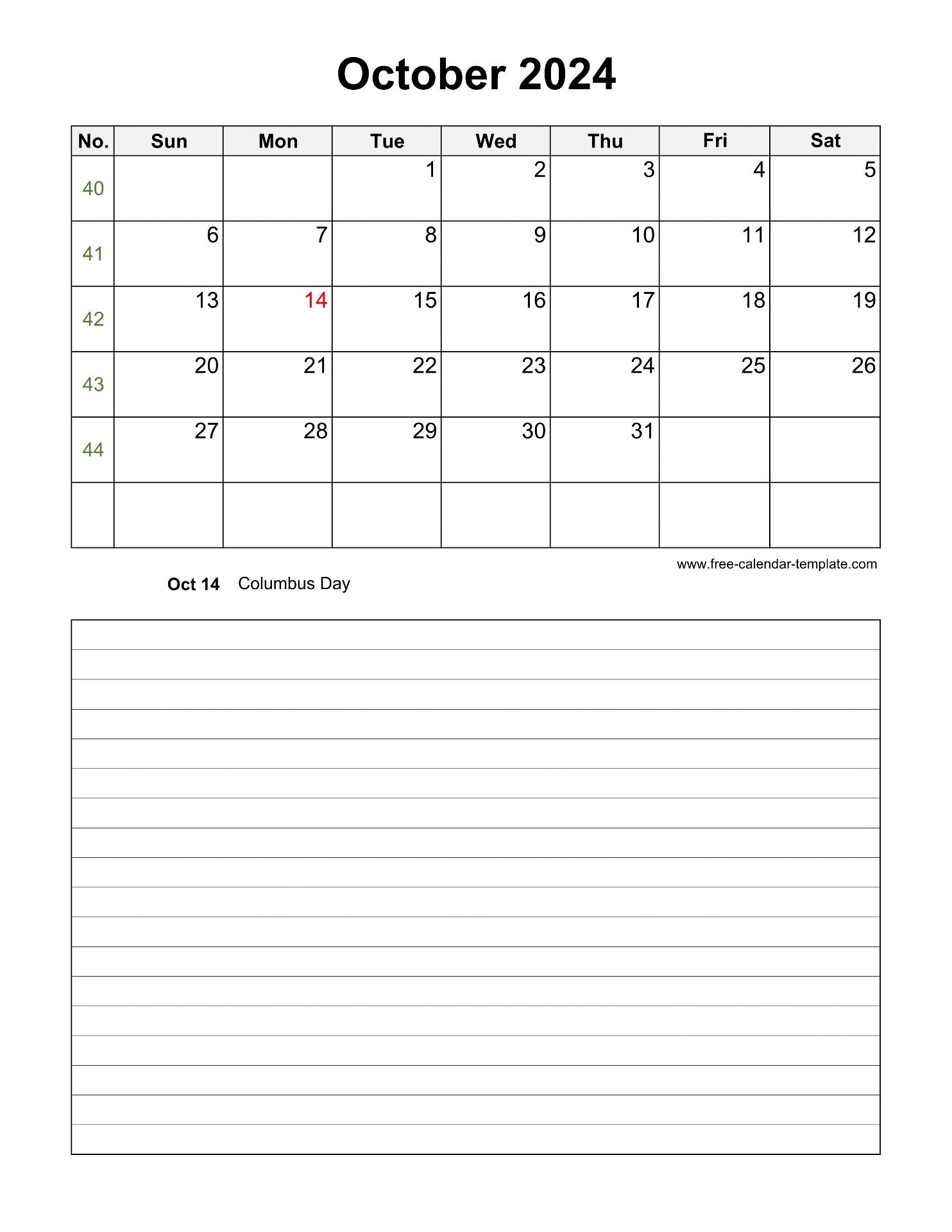 Printable October 2024 Calendar With Space For Appointments vertical Free calendar template