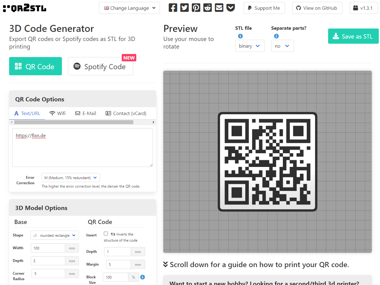 QRCode2STL Create Custom 3D Printable QR Codes Free Online Tool
