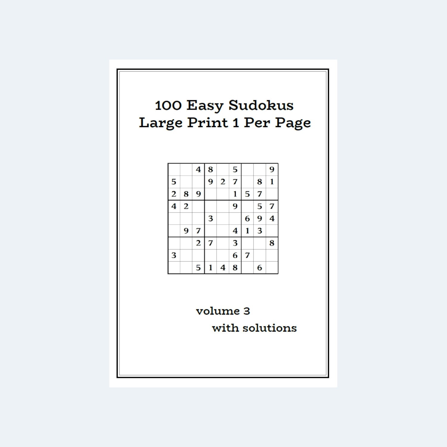Sudoku Puzzles 100 Easy solve Sudoku Puzzles Large Print One Per page Volume 3 With Solutions Digital Download Etsy