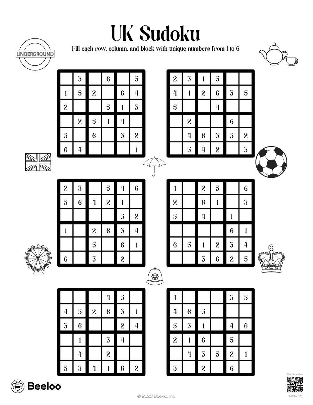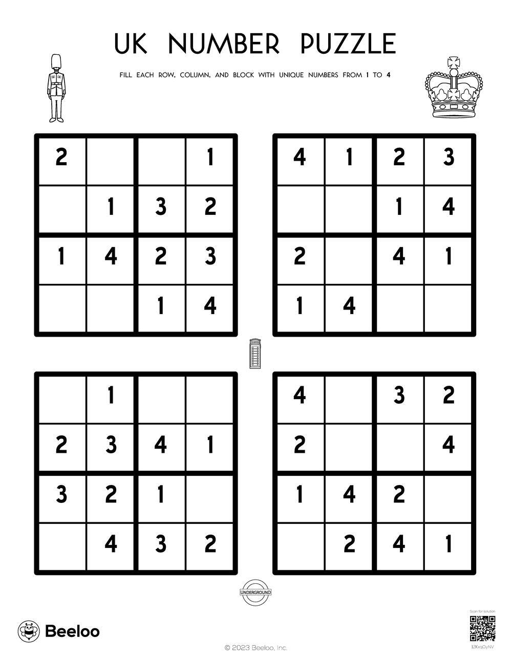 United Kingdom themed Sudoku Puzzles Beeloo Printable Crafts And Activities For Kids