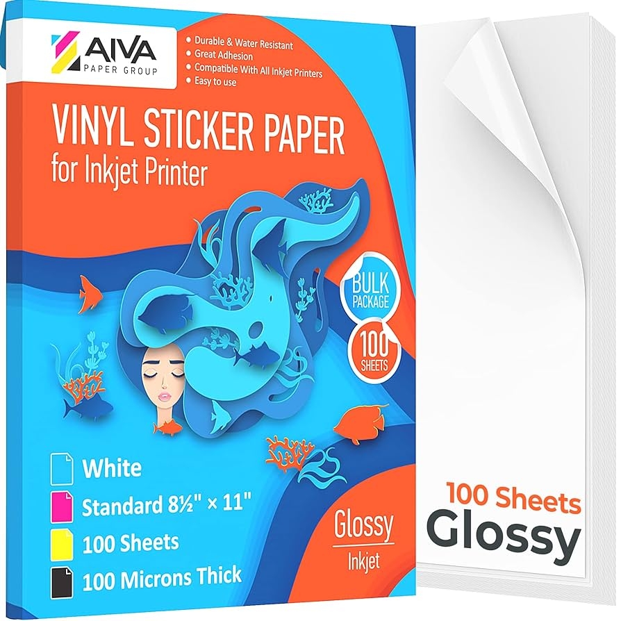 Amazon Printable Vinyl Sticker Paper Waterproof Decal Paper For Inkjet Printer 100 Self Adhesive Sheets Glossy White Standard Letter Size 8 5 x11 Automotive