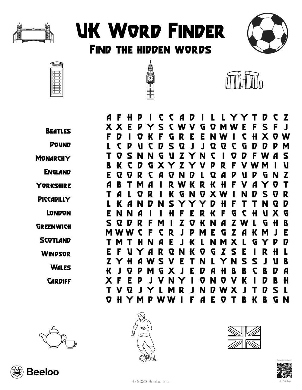 United Kingdom themed Word Searches Beeloo Printable Crafts And Activities For Kids