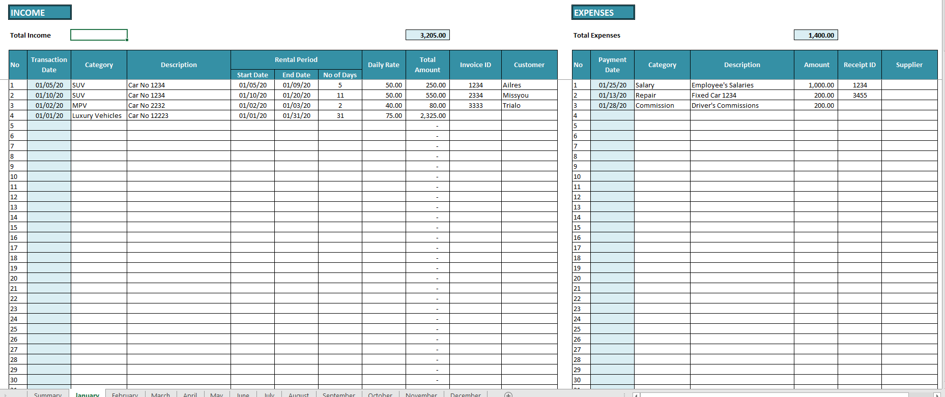 rental property worksheet excel